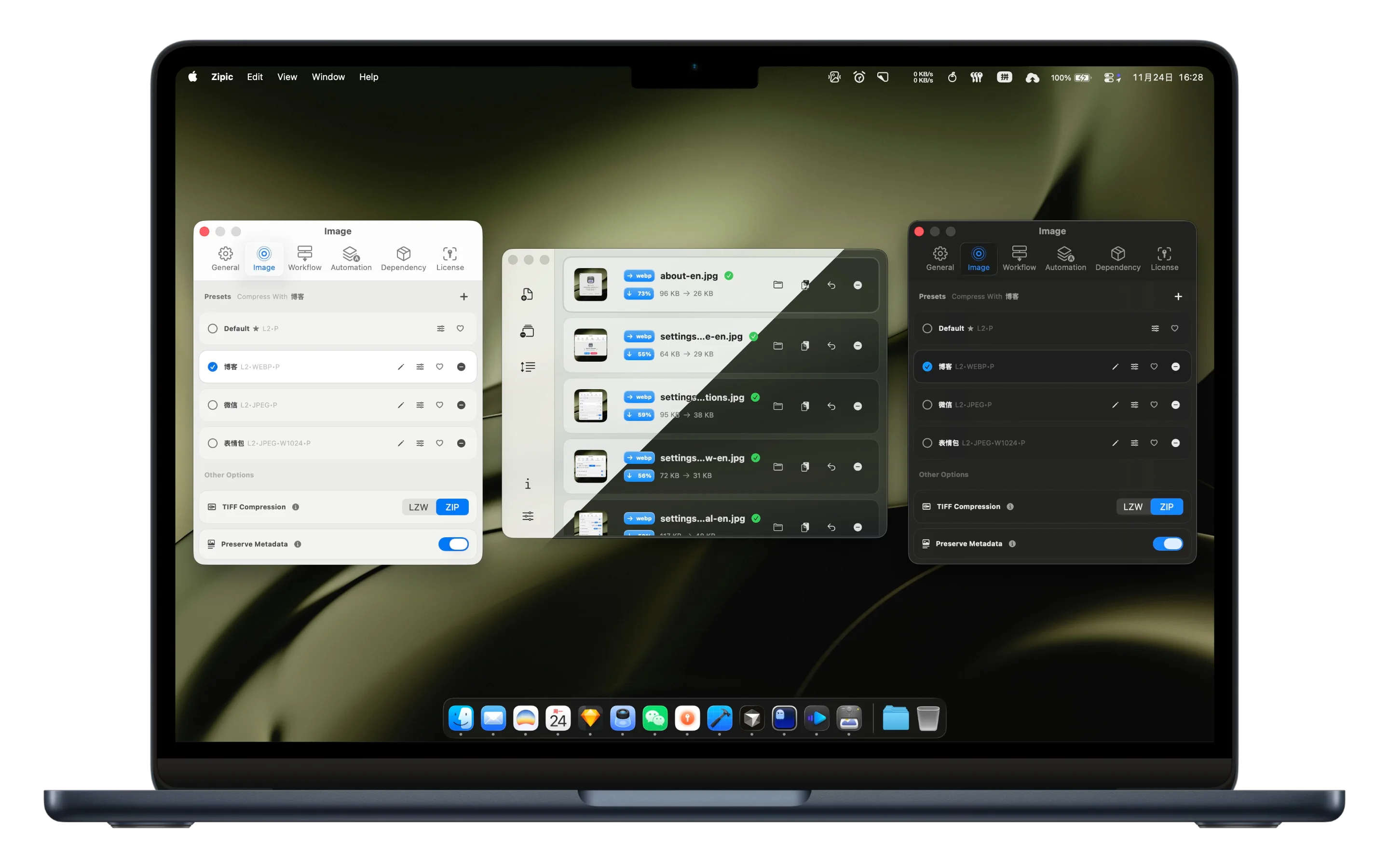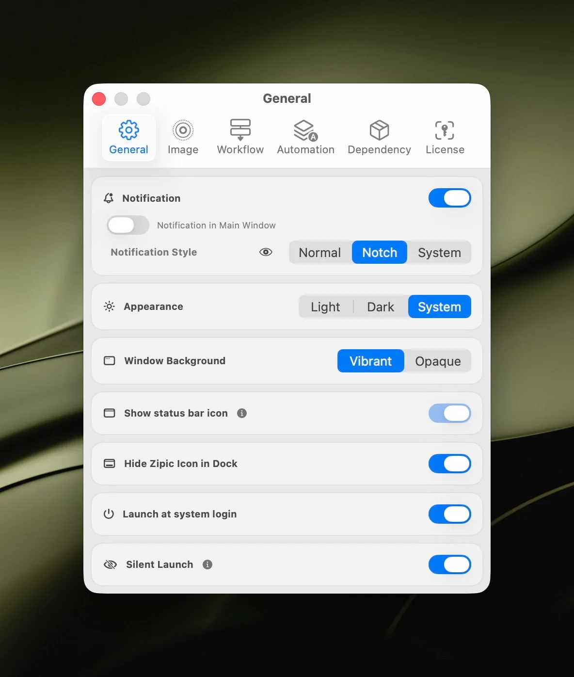 Zipic naturally supports both light and dark themes. It follows the system by default, but you can manually switch it in the settings window.
