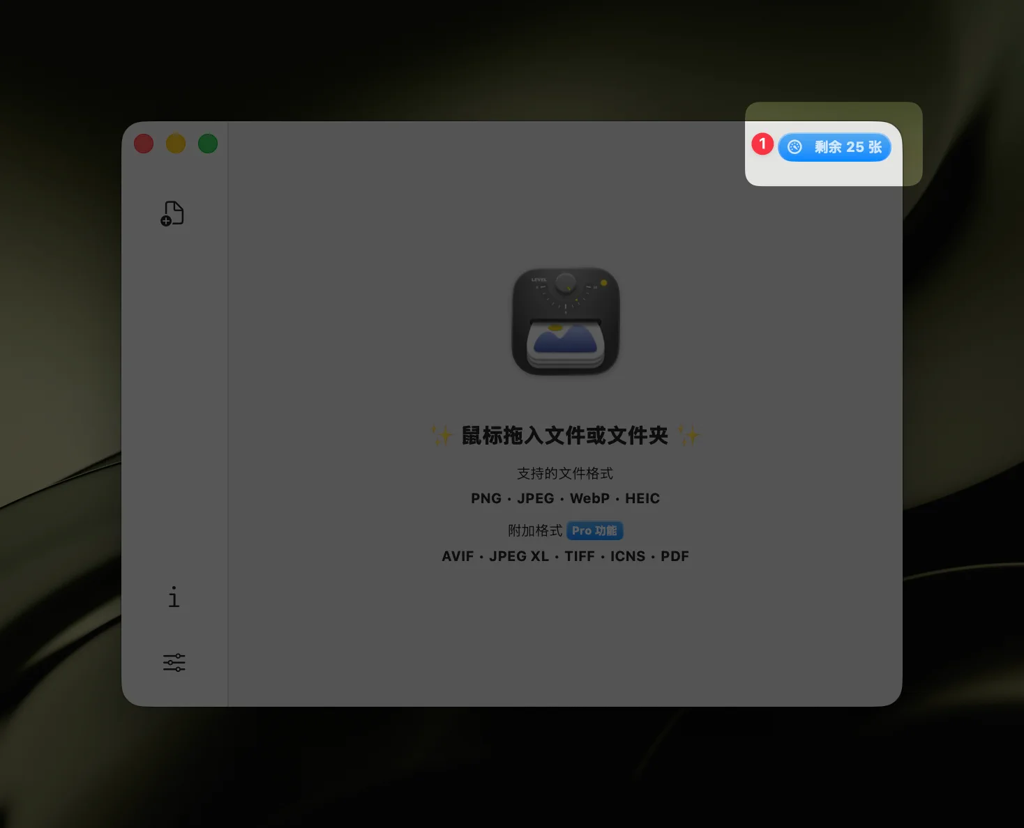打开许可激活窗口:运行 Zipic,点击主窗口右上角的 计量按钮,形如 【剩余xx张】