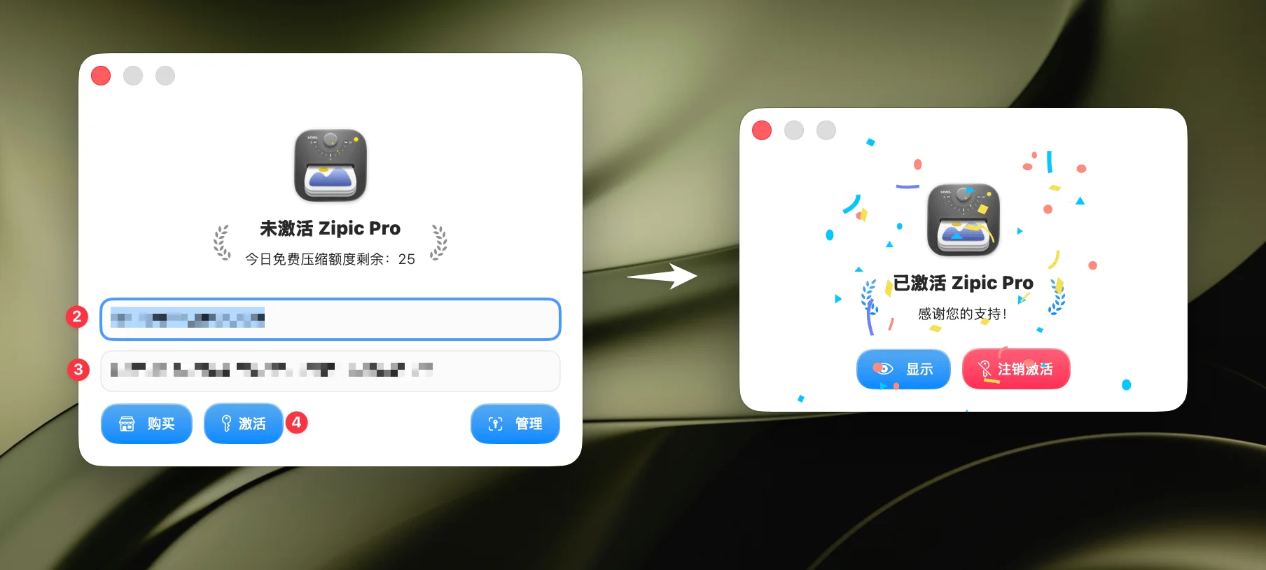 来到这个页面想必您已经购买了 Zipic Pro 版许可,那么接下来就让我们开始激活吧。