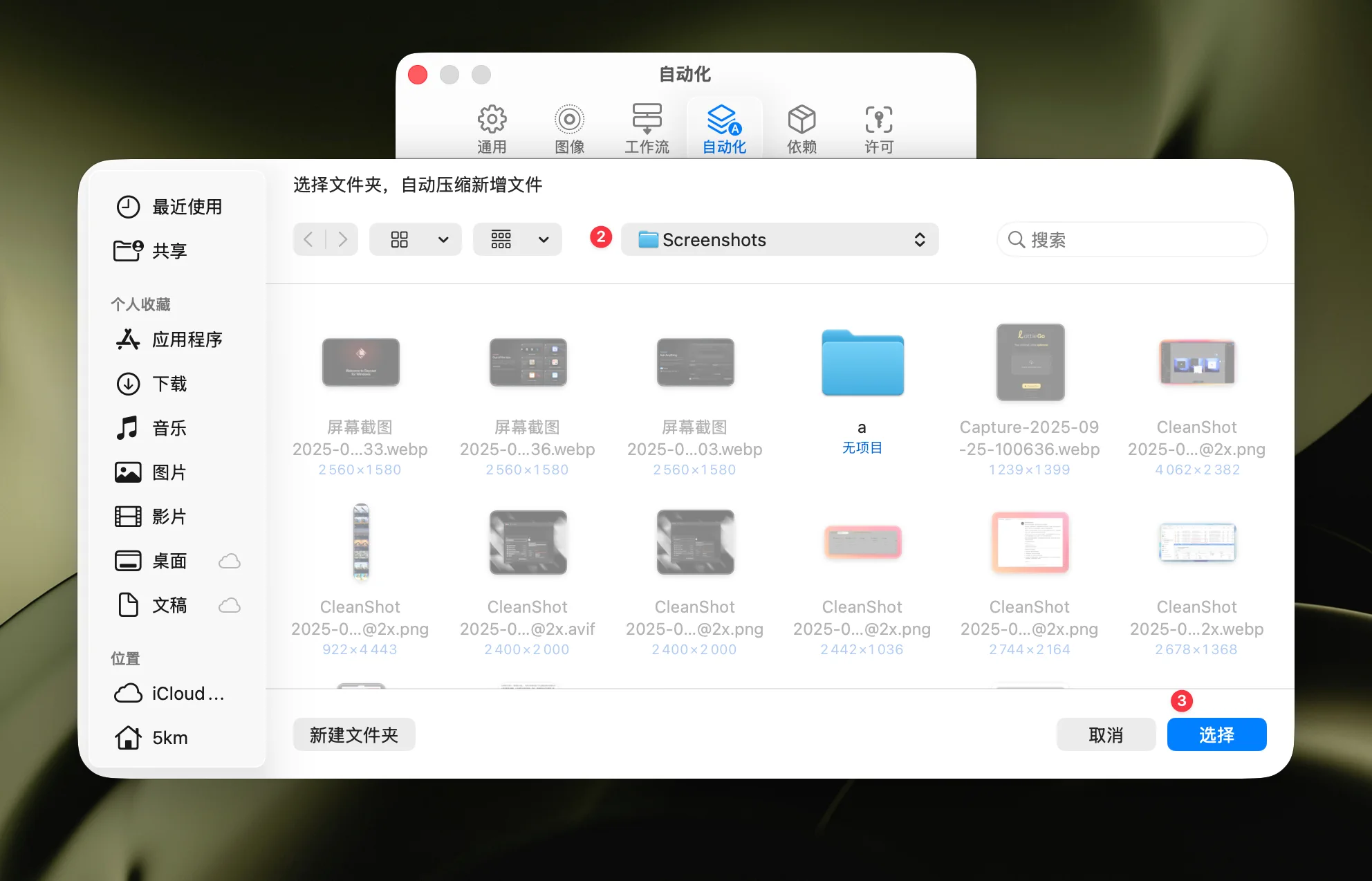 以 CleanShot X 截图工作流为例:我希望 Zipic 自动将保存到指定文件夹的截图转换为 webp 格式同时进行等级 3 的压缩。具体操作如下视频所示: